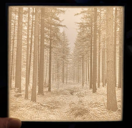 A lithophane is a thin plaque, typically made of porcelain or 3D-printed plastic, with an image that becomes visible only when lit from behind.